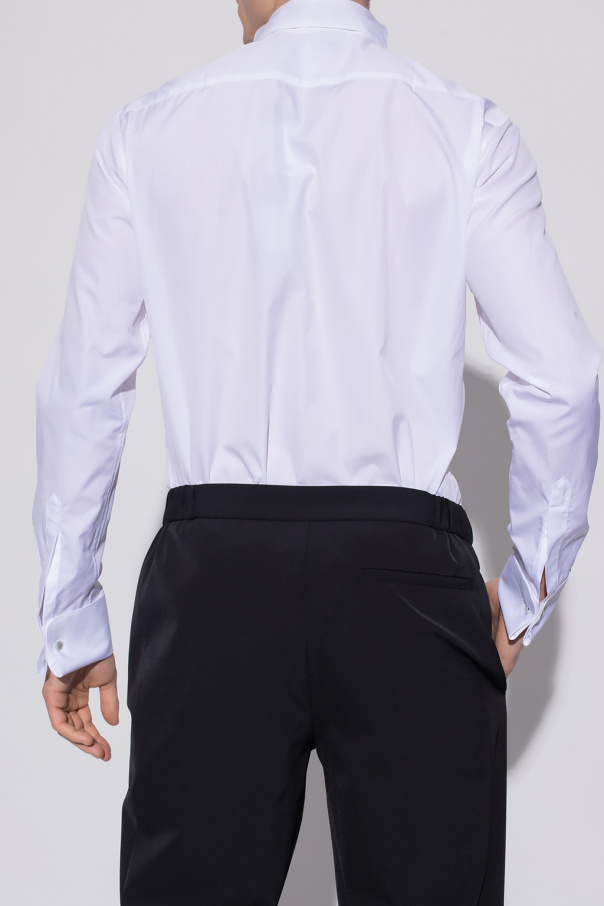 White tuxedo shirt from Emporio Armani. Made of cotton, this style features button fastenings and long sleeves with button cuffs.