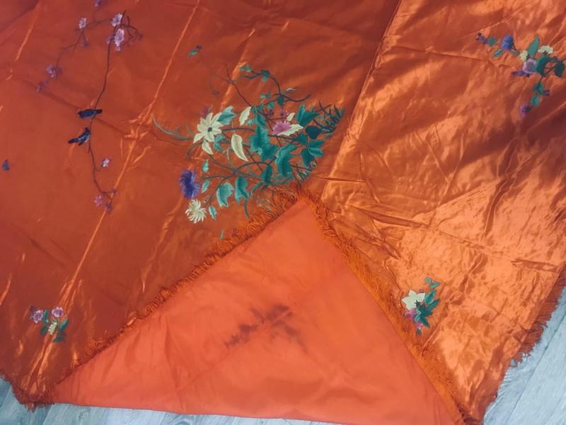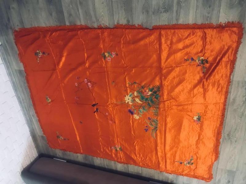 Эксклюзивное яркое покрывало с красивой вышивкой гладью и по всему периметру с бахромой длиной 5см, можно использовать как покрывало, так и как плед. Верх – атласный, низ – искусственный шелк, прокладка флизелин. Страна производитель – Вьетнам