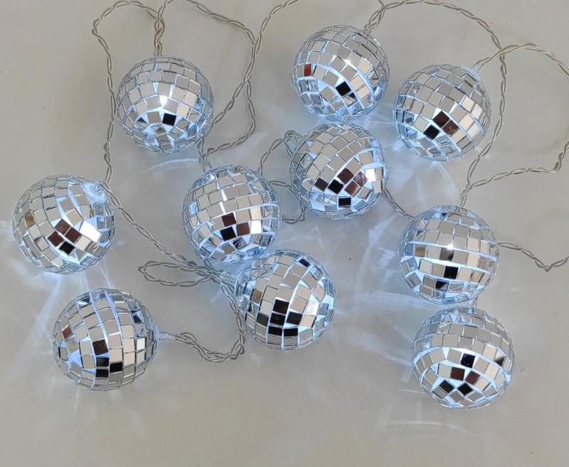 - Кількість лампочок: 10 підвісок у вигляді дзеркальних диско-куль