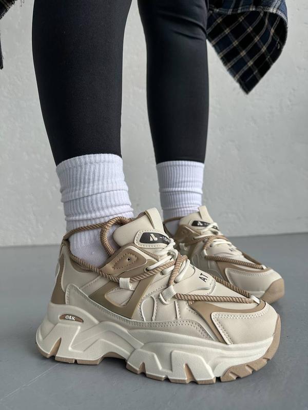 41-25.5смСтильні бежеві жіночі кросівки весна-осінь на подвійній шнурівці,на масивній високій підошві,демі ПАВ