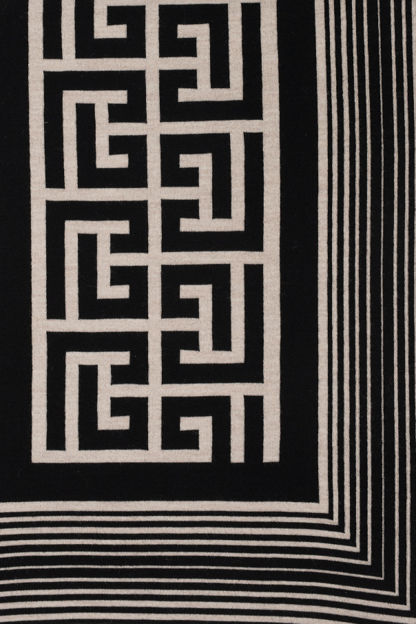 Black and beige reversible scarf from Balmain. Made of wool, this item showcases a logo pattern.