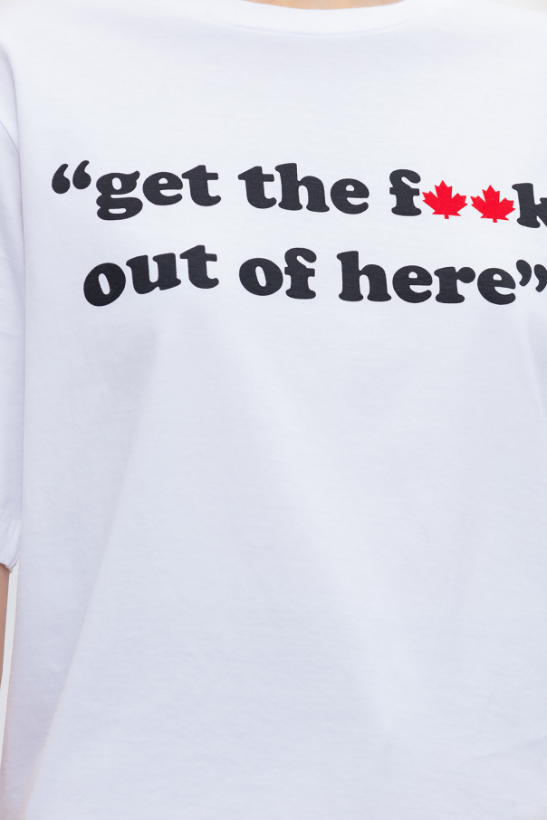 White crewneck T-shirt from Dsquared2. Made of cotton, this short sleeve design is decorated with a red and black print on the front and black logo printed at the back.