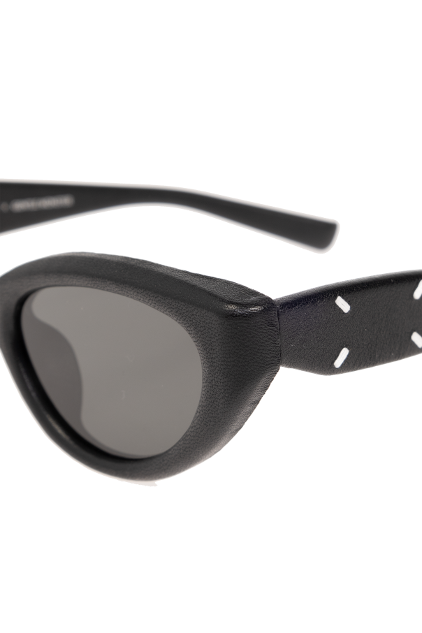 Introducing the epitome of avant-garde elegance: the Maison Margiela x GENTLE MONSTER 'MM108 Leather' Sunglasses. Crafted with a discerning eye for detail, these unisex sunglasses merge the iconic craftsmanship of Maison Margiela with the innovative design ethos of GENTLE MONSTER. The dominant matte black hue exudes sophistication, while the distinctive cat-eye shape lends a slightly futuristic, yet timelessly sleek silhouette. Made from premium acetate and leather, these sunglasses promise not only durability but also an exquisite touch that is typical of exclusive brands. The black frames are complemented by gray lenses offering 99.9% protection against UV radiation, ensuring both style and safety. A standout feature is the signature white stitching on the temples—a recognizable motif of Maison Margiela, adding a layer of uniqueness to this collaborative masterpiece. Though the logos of the collaborating brands are subtly incorporated, their prestigious essence is unmistakable. The sunglasses come with a dedicated case, ensuring their protection and longevity. Why Purchase This Product? Exclusive collaboration between Maison Margiela and GENTLE MONSTER. Unique cat-eye shape with a futuristic yet elegant design. Crafted from high-quality acetate and leather for durability and style. Iconic white stitching detail enhances their unique appeal. 99.9% UV protection for safety without sacrificing style. Includes a dedicated case for protection and storage.