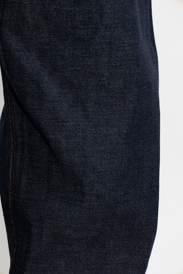 Navy ‘Banibano’ jeans from A.P.C. Crafted from cotton, this straight leg pair is complete with a zip and button closure, two front pockets and two back pockets.