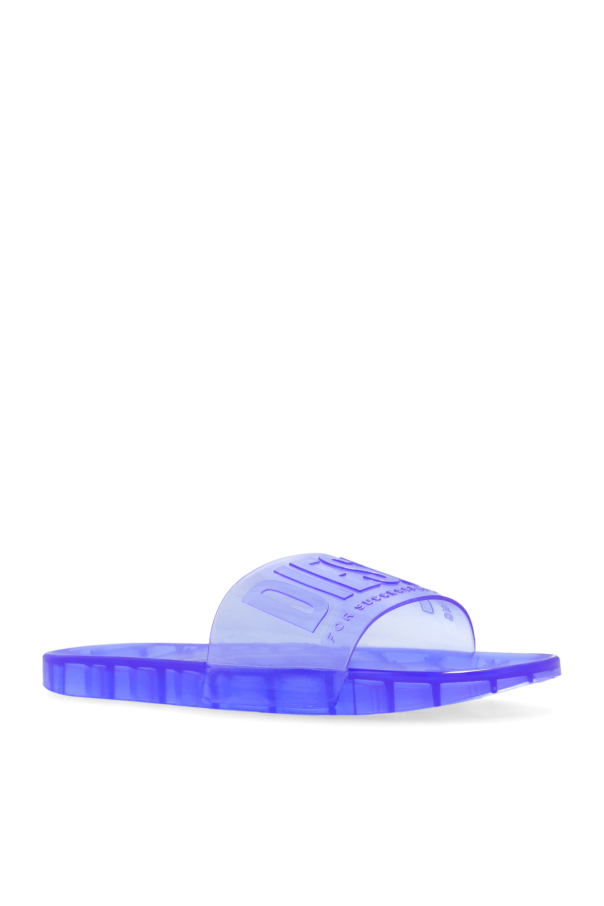 Purple ‘SA-KARAIBI’ slides from Diesel. Made from translucent rubber, this model showcases a tactile logo on the front.