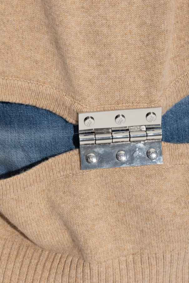 Beige sweater from JW Anderson. Made of a blend of sheep wool and cotton, this long sleeve design features decorative cut-outs, metal hinge in silver-tone and ribbed trims at the neck, hem and cuffs.