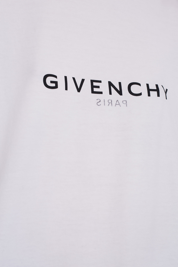 White oversize T-shirt from Givenchy. Made of cotton, this short sleeve design features black logo prints and a ribbed crew neck.