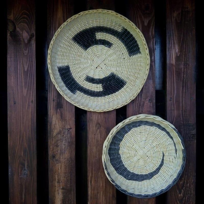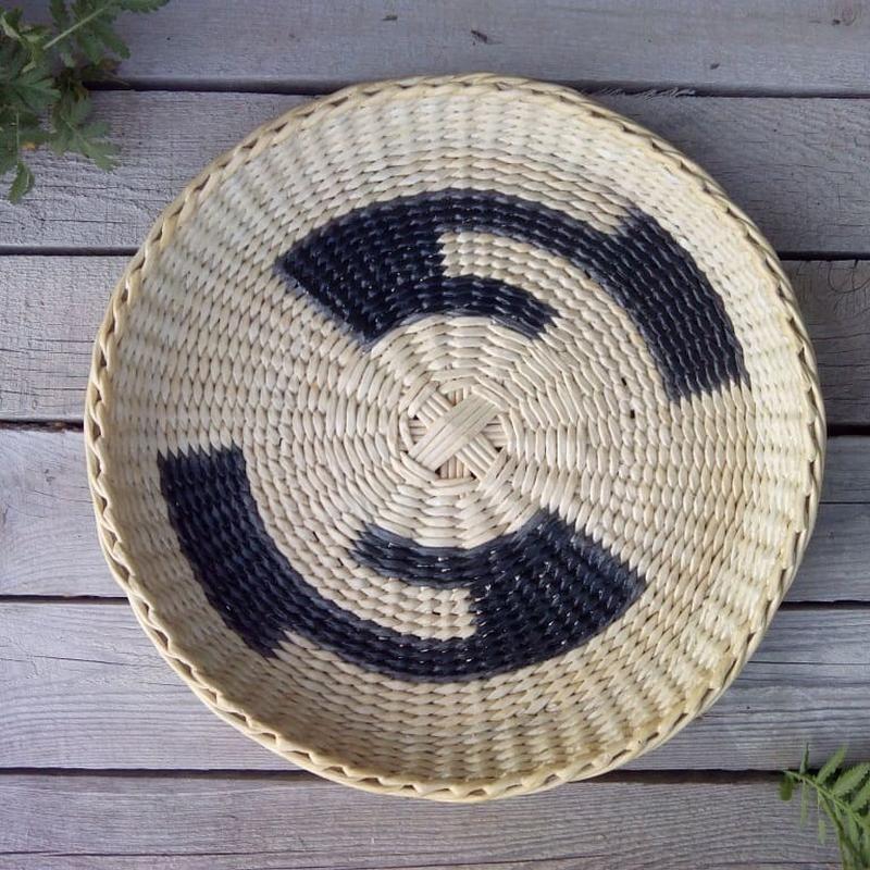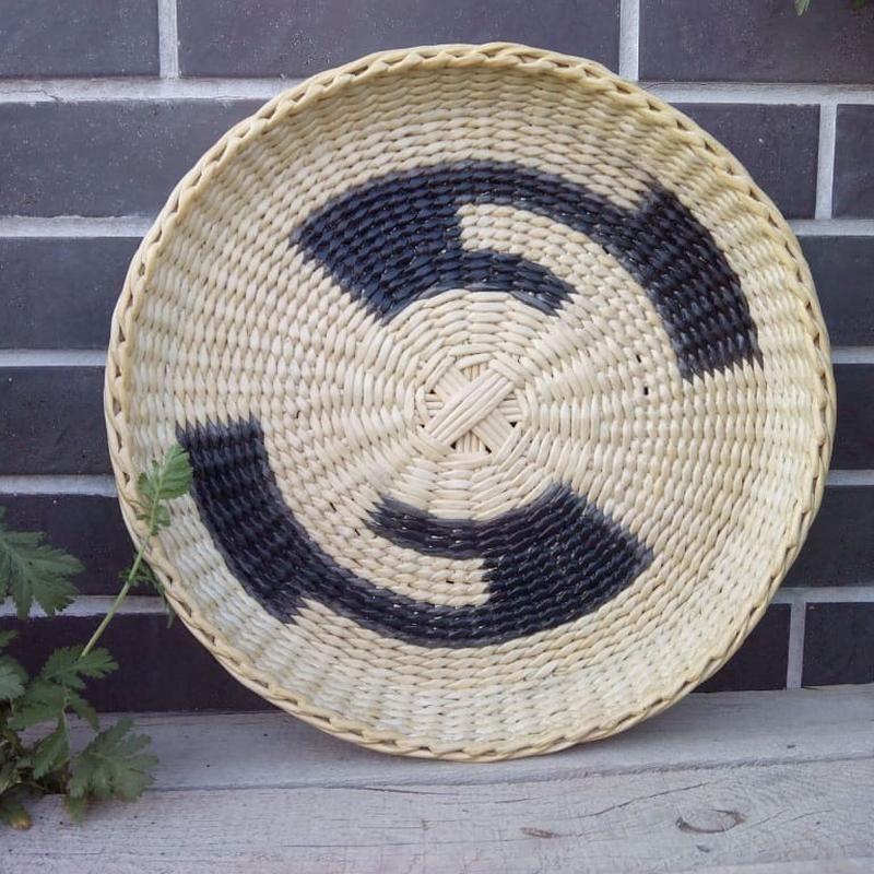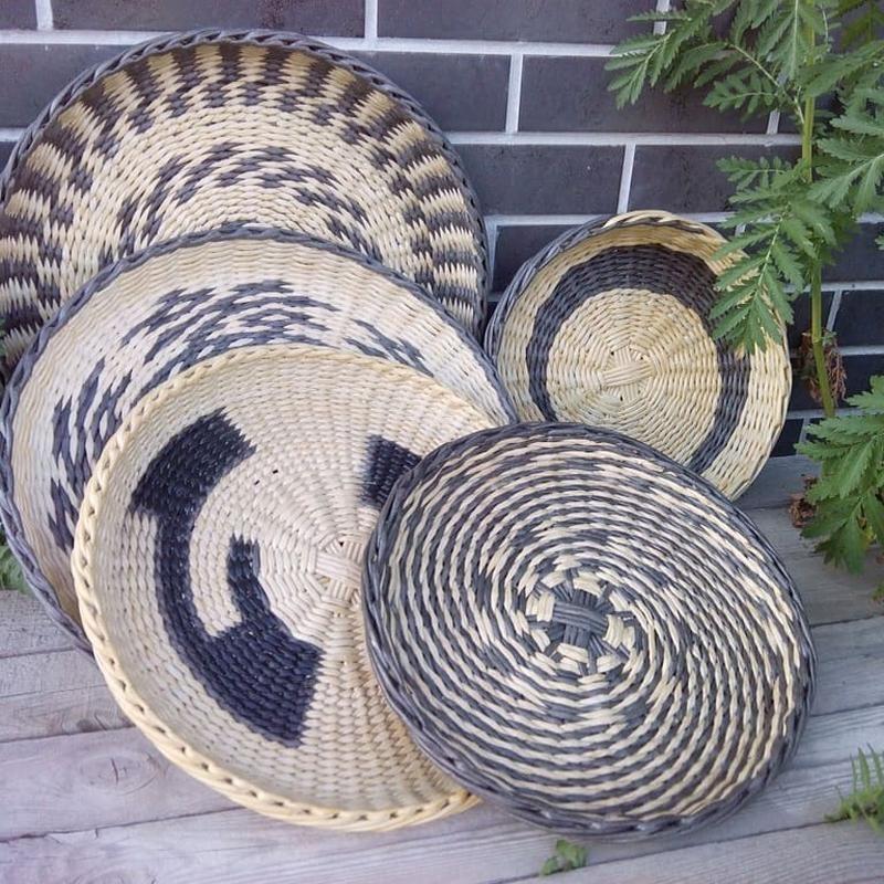 Тарелки изготовлены в технике плетения из бумажной лозы.