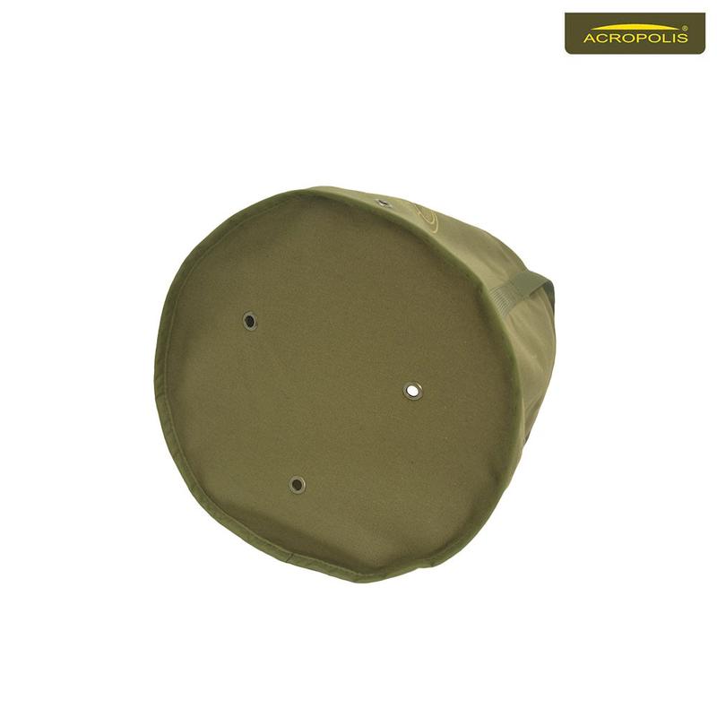 Відро для збирання грибів, виготовлене з міцного водовідштовхуючого брезенту.