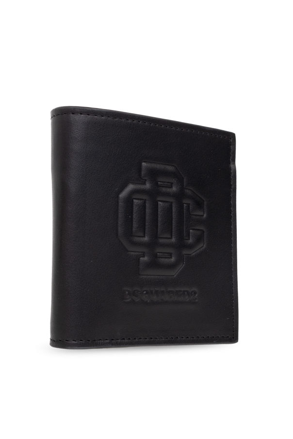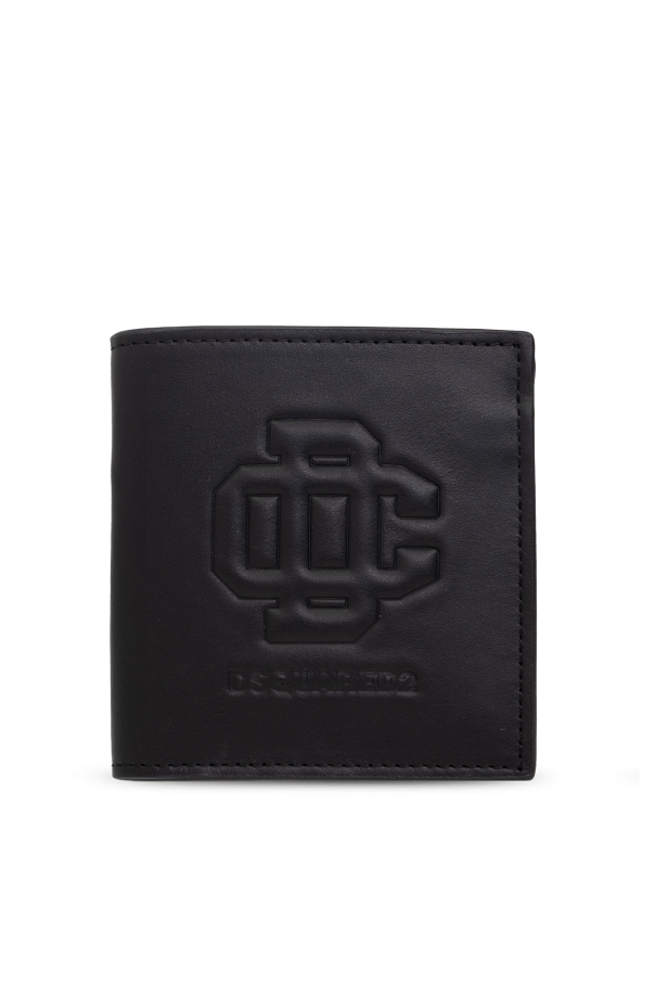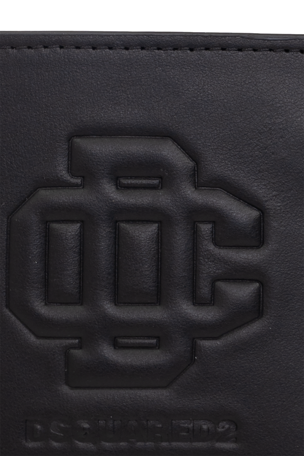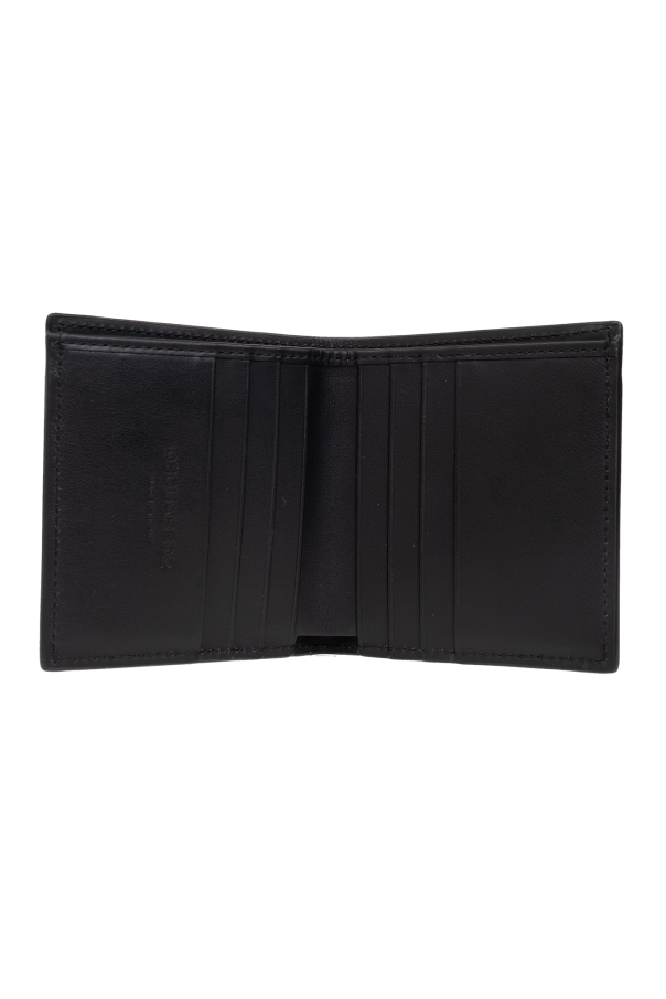 Black foldable wallet from Dsquared2. Made of calf leather, this item is decorated with an embossed logo and has two bill compartments and eight card slots inside.