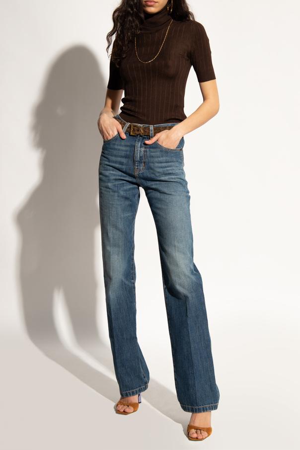 Brown and purple ‘Paz’ heeled sandals from Saint Laurent. Tied at the ankle, this pair features a square open toe and black leather sole.
