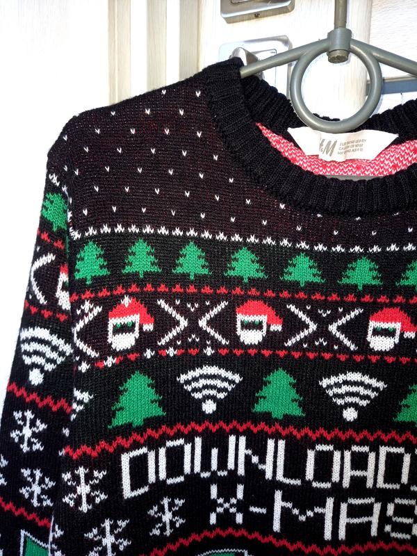 Теплый новогодний рождественский на Новый год свитер свитшот кофта джемпер с оленями приставками H&M для мальчика 8-10 лет рост 134-140