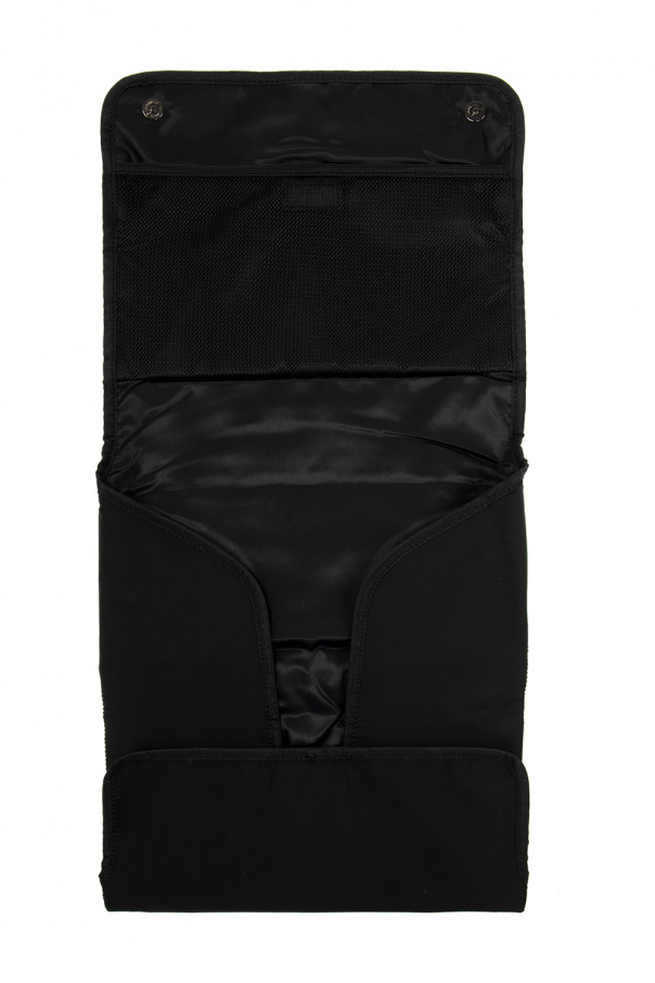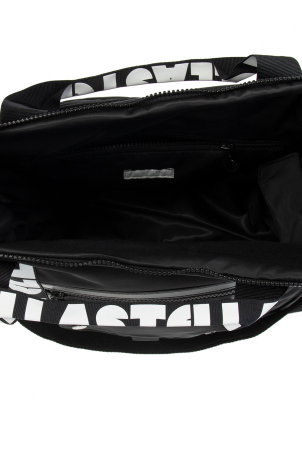 Black changing bag from Stella McCartney Kids. Fastened with a two-way zip, this model features straps with white prints, two front pockets with zips and magnetic snaps, one two-way zip back pocket, two half-round handles, stroller handles and one internal compartment with three pockets. Comes with a changing bag.