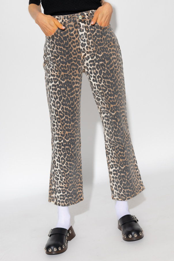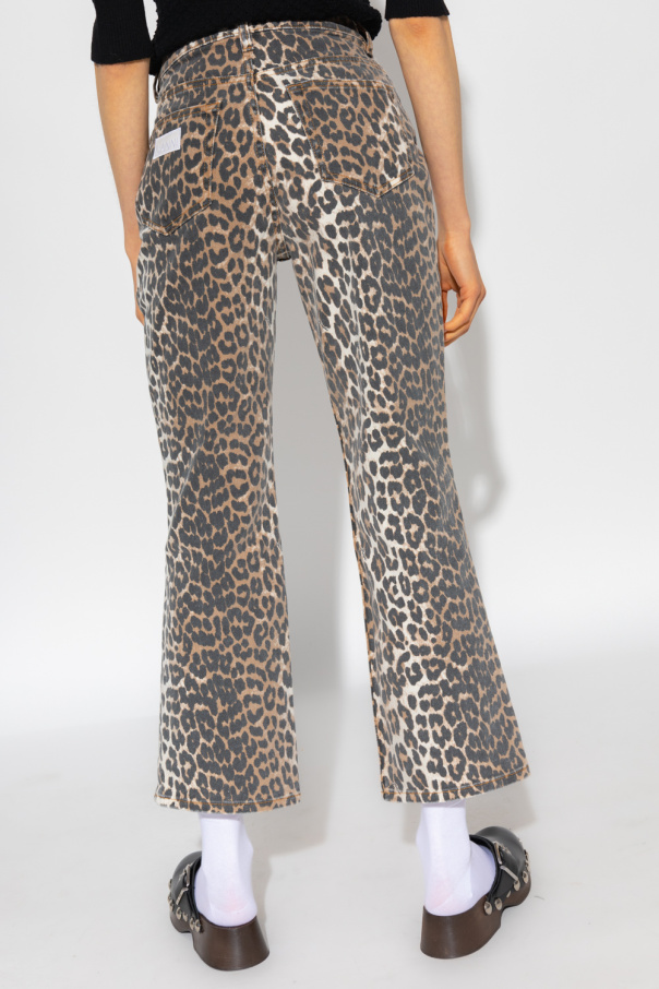 Brown, cream and black jeans from Ganni. Embellished with an animal motif and washed effect, this pair falls with cropped, straight legs and features a zip fly with a button, classic five pockets and a white logo patch at the back.