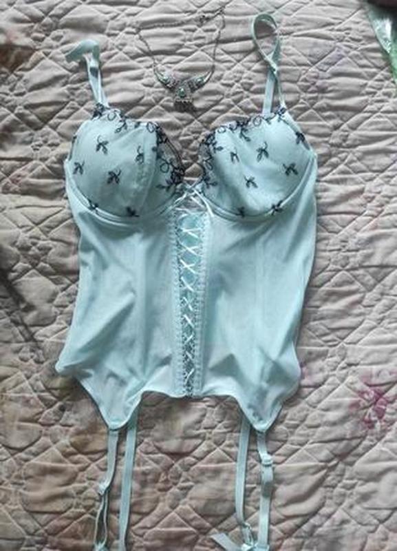 Красивий сексуальний найніжніший корсет зі шлейками для панчіх. Колір ніжно ніжно-бірюзовий з чорною вишивкою на грудях. Спереду декоративна шнурівка. Є шлейкм для панчіх. По боках еластична сітка. Ззаду застібка на три позиції. Розмір на фото. Дуже красиво ефектно сексуально виглядає. Потрібен був саме для фотосесії, ідеальний стан. Побалуйте себе і коханого самою ніжністю! Фото на собі не роблю! Замерчики скину. Пересилаю. Питання в особистому повідомленні. Дивіться також інші мої оголошення. Удачі всім! Доставка: Пересилаю оплата на картку Приватбанку або через сайт Виробник: Secret Possessions Колір: бірюзовий