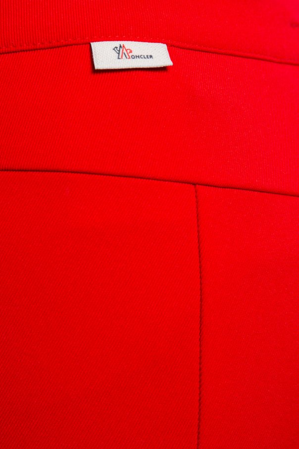 Red ‘Pantalone’ ski trousers with stirrups from Moncler Grenoble. Fastened with a zip, snaps and a button.