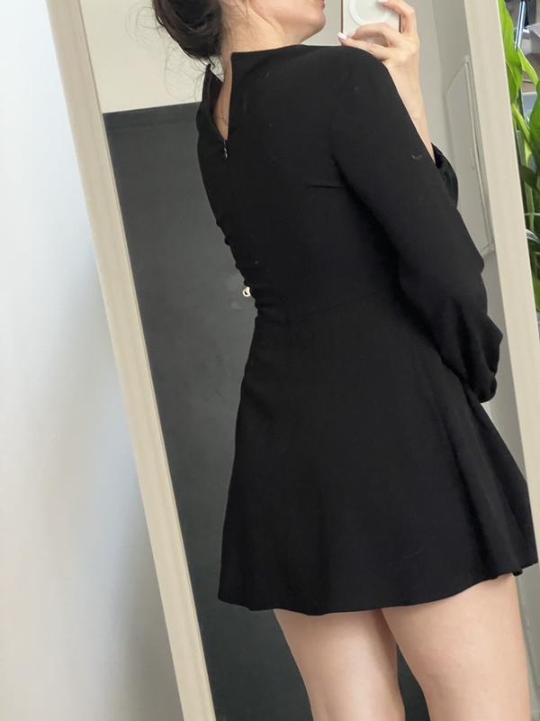 Строгое черное платье. Размер М. Длинный рукав длина 58, у кисти на сборке. ПОГ 46, ПОТ 37, ПОБ 53, на спине змейка.