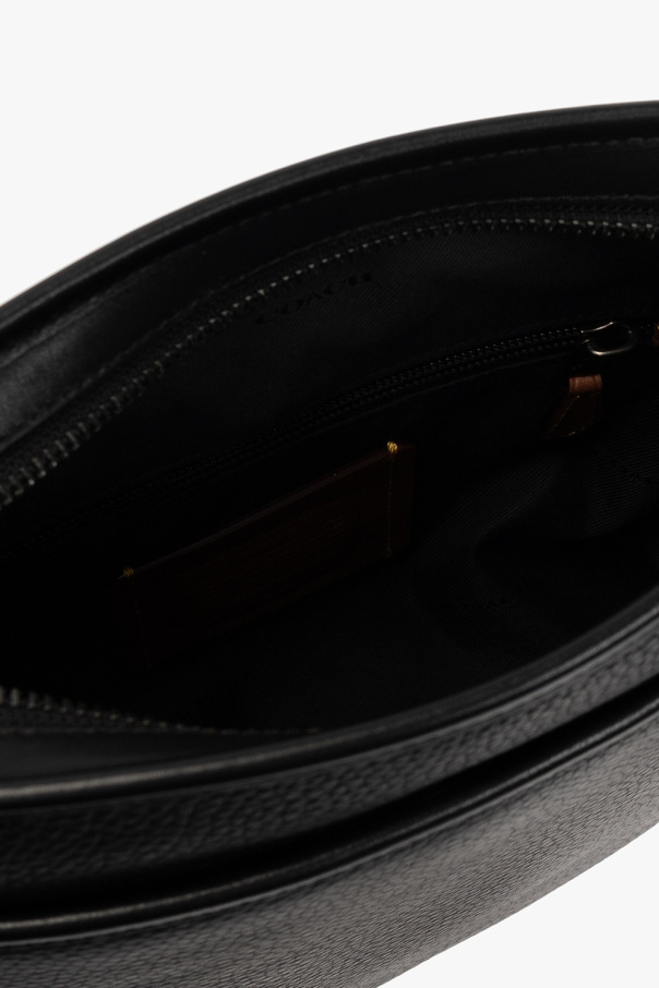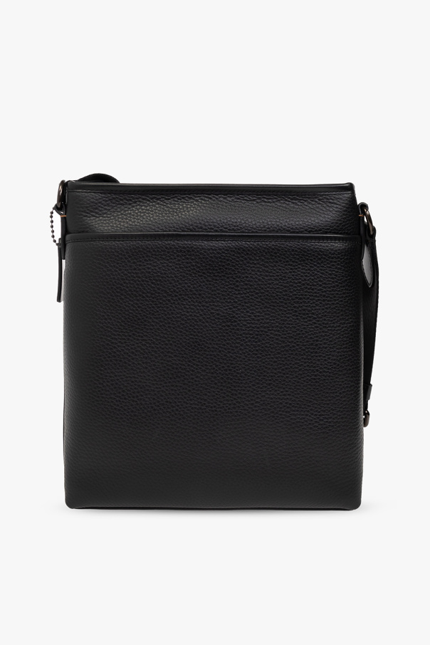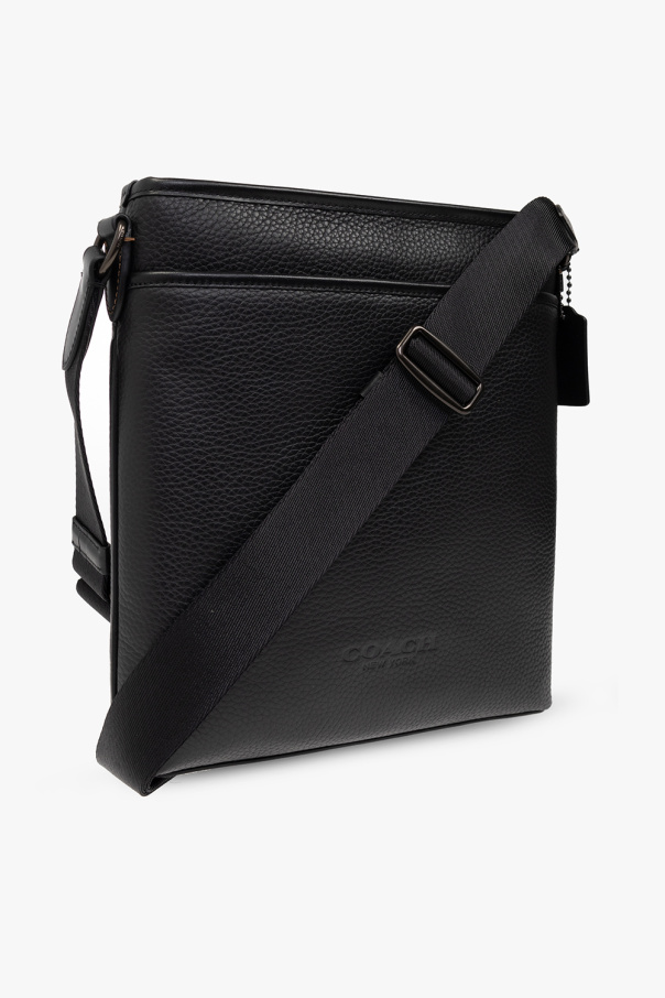 Black ‘Gotham’ shoulder bag from Coach. Crafted from leather, this design secures with a zip and showcases an embossed logo. It is complete with an adjustable shoulder strap, two external pockets with magnetic closures on the front and back, dark silver-tone metal hardware and one internal compartment with one zip pocket and two slip pockets.