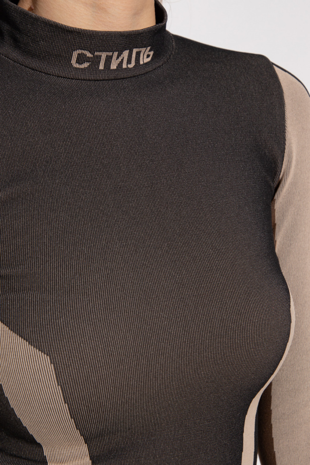 Beige and black body with a high neck from Heron Preston. Fastened with snaps, this long sleeve design is decorated with a logo pattern.