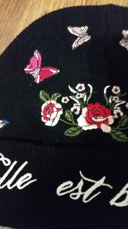 чёрная шапке с вышивкой состояние идеальное с заворотом