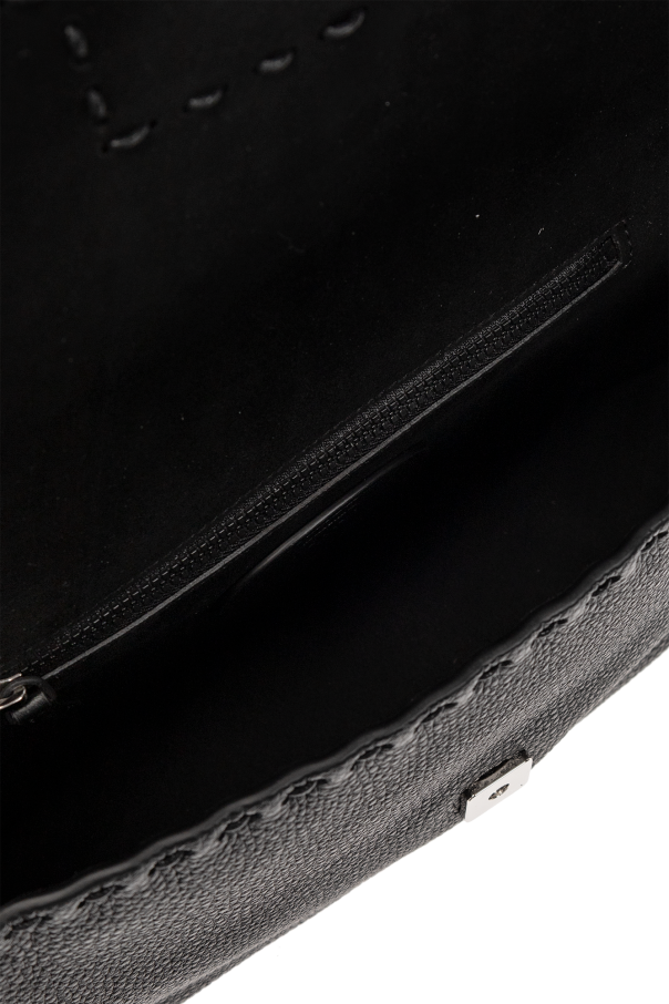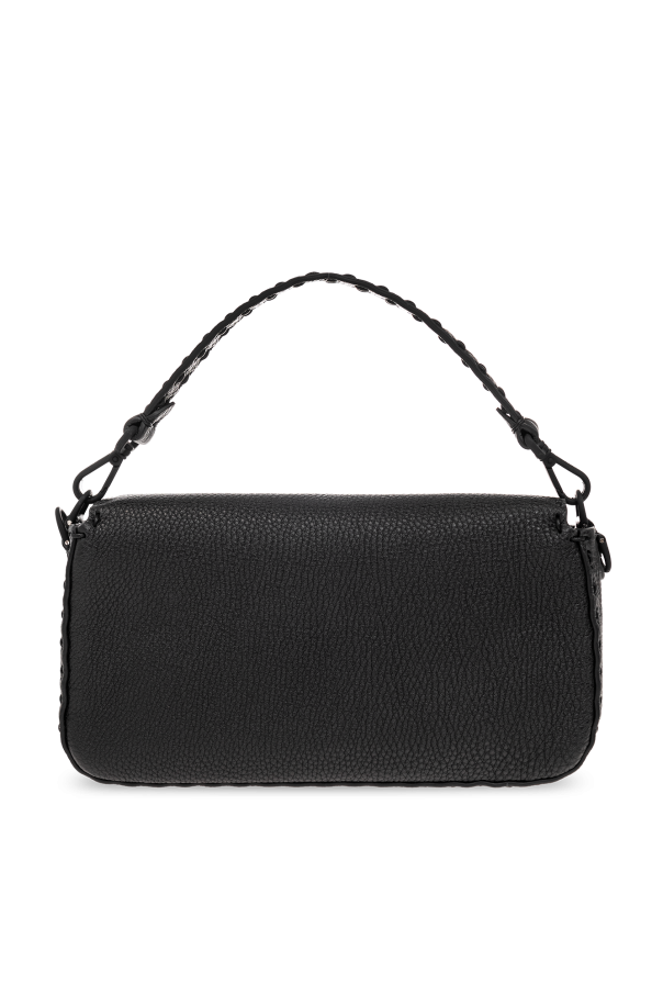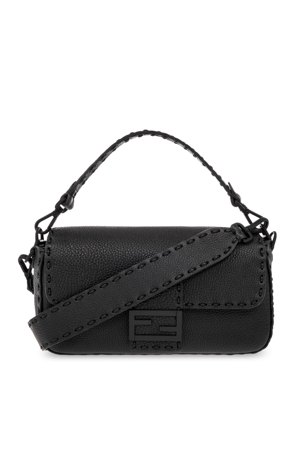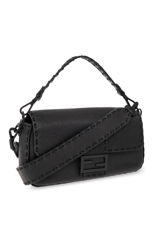 Black ‘Baguette’ shoulder bag from Fendi. Crafted from grained leather, this design secures with a snap featuring a metal logo plaque and features a detachable handle and shoulder strap, exposed stitching details and one internal compartment with a zip pocket.