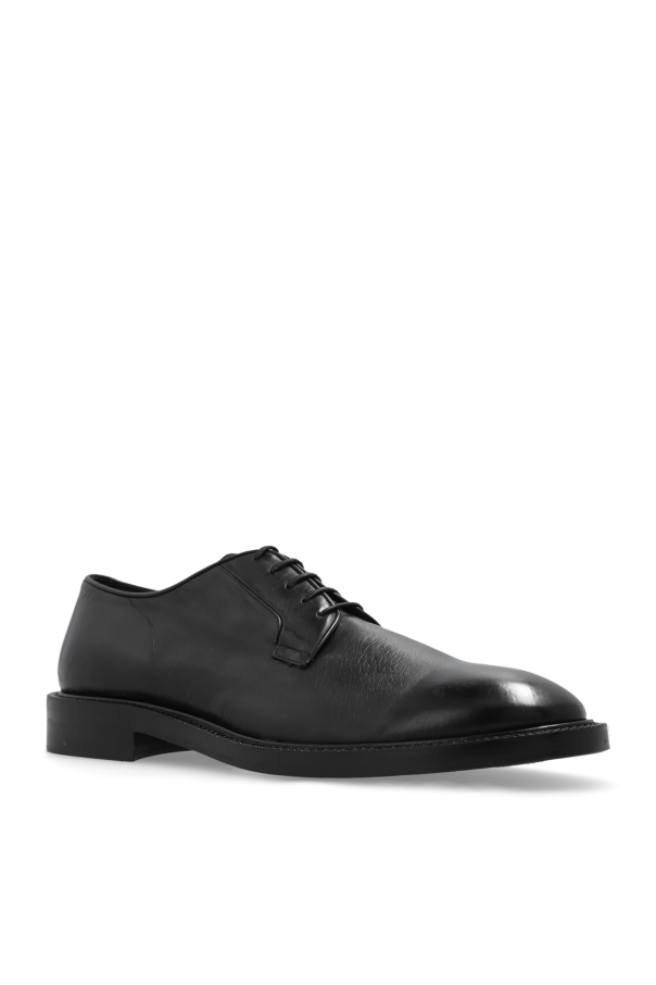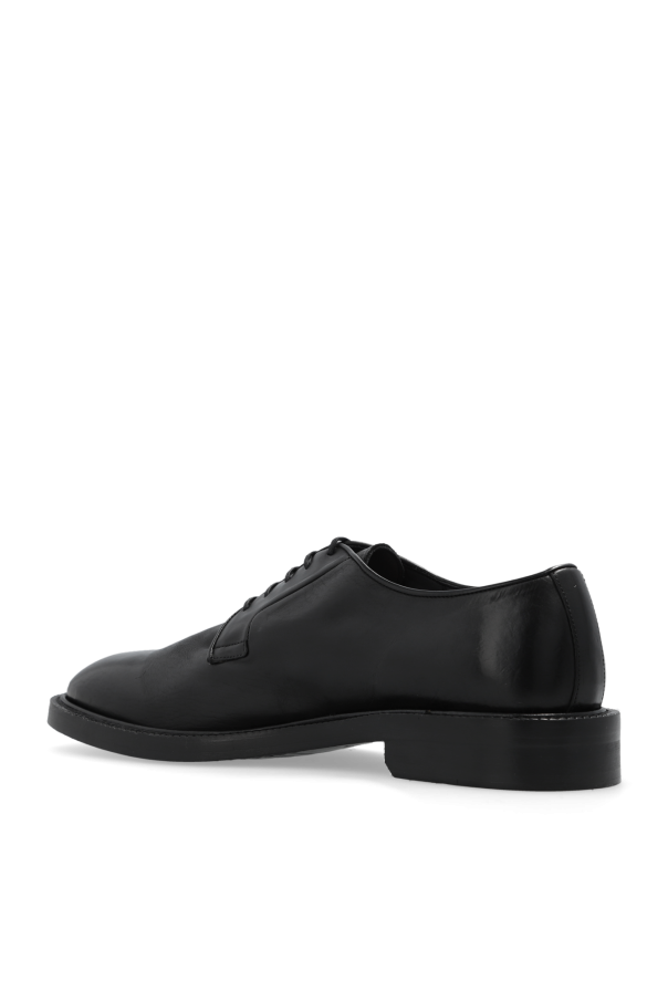 Black ‘Dakar’ derby shoes from Paul Smith. Made of leather, this lace-up pair sits on a black leather sole and has an almond toe.