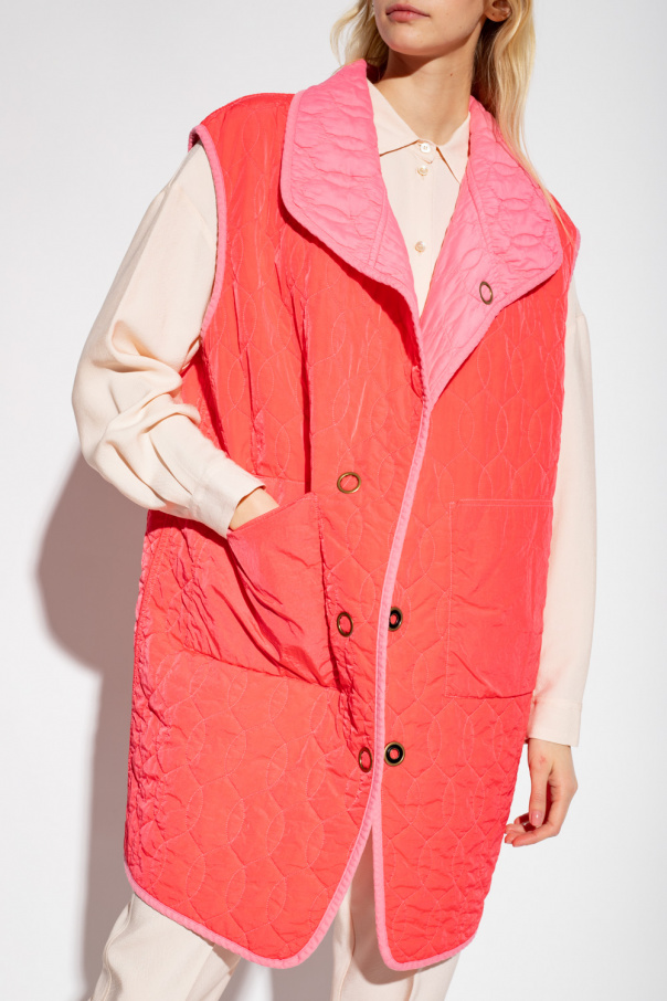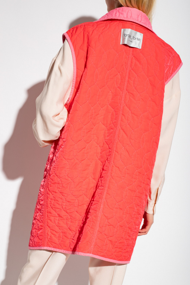 Pink quilted vest from Forte Forte. Crafted from a cotton and silk blend, this style features snap fastenings, two slip pockets and a red lining.