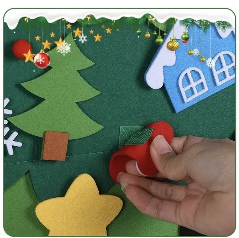 Яркая детская елочка с игрушками из фетра — это идеальное украшение для дома на Новый год и увлекательная игрушка для детей. Ее размер 95 х 70 см позволяет ей занять достойное место на стене в детской комнате, создавая сказочную атмосферу любимого праздника.Игрушки крепятся к основе с помощью липучек, что позволяет детям самостоятельно украшать елку. Эта елочка не только украсит ваш дом, но и станет развивающим элементом для малышей, способствуя развитию мелкой моторики и воображения.