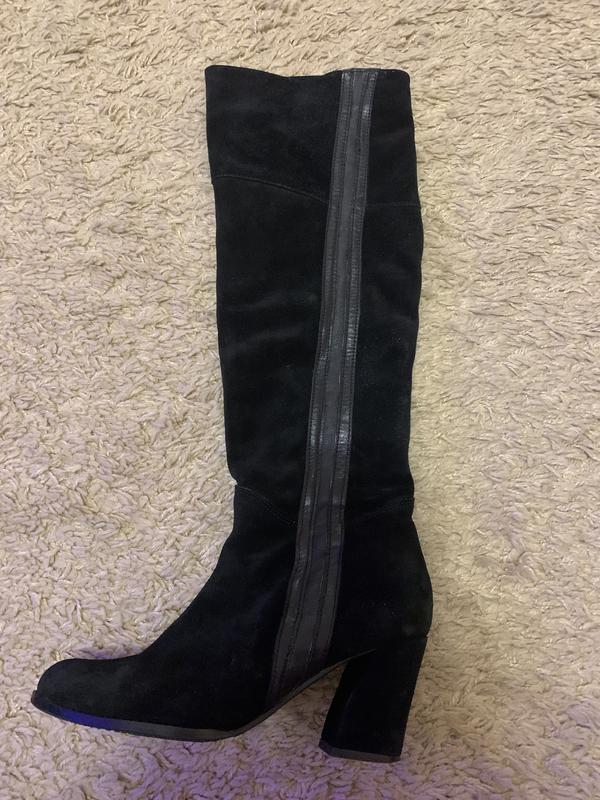 Чоботи осінні, натуральний замш, в хорошому стані, висота каблука 8 см, довжина халяви від п'яти 48 см, ширина халяви 18 см