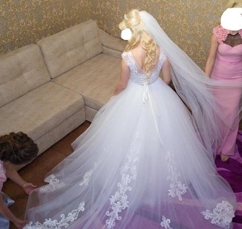 Шикарное,очень красивое,воздушное,сверкающее,нежное,свадебное платье со съемным шлейфом.Платье невероятно красивое,ветки на платье и шлейфе красиво и нежно переливаются при освещении,шлейф из нескольких слоев ткани,по краю широкая тесьма,придающая объем,при этом шлейф легкий,крепится на талии,в любой момент можно с легкостью снять.Платье расшито нежными ветками из дорогого кружева,пять спереди и три сзади,корсет регулируется лентами,нежно украшен и расшит,не наляпистый,встроенный лиф,который отлично держит и приподнимает грудь.Платье не венчанное,в идеальном состоянии,без каких либо дефектов,как новое.Вы будете самой прекрасной и неотразимой невестой в этом платье за приятную цену,отдаю в половину дешевле,т.к. просто лежит и занимает место!в подарок новые круги для платья.Размер регулируется от С до Л(44-48).