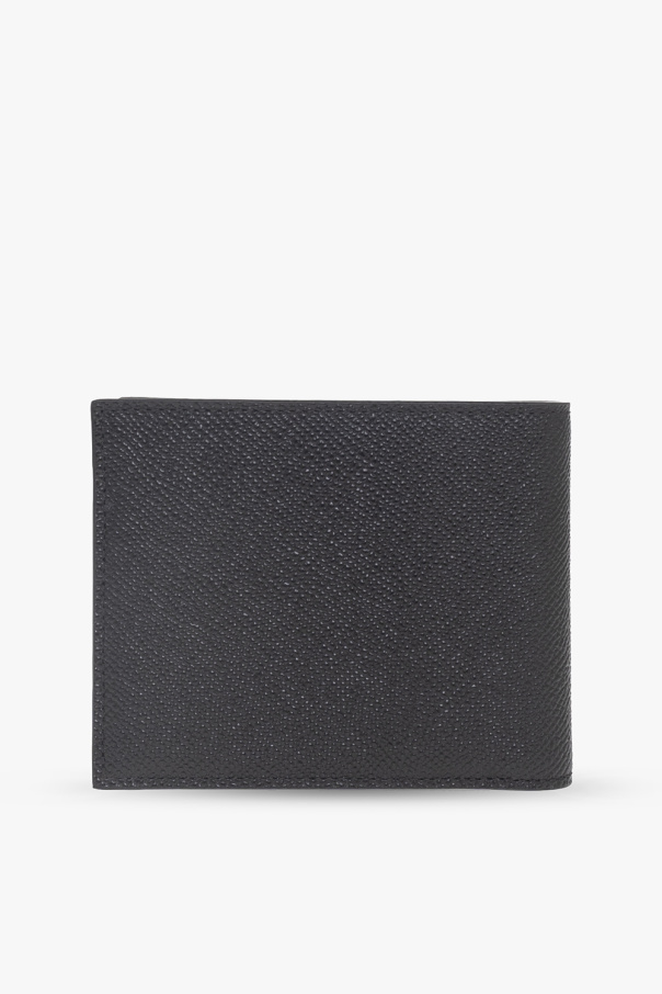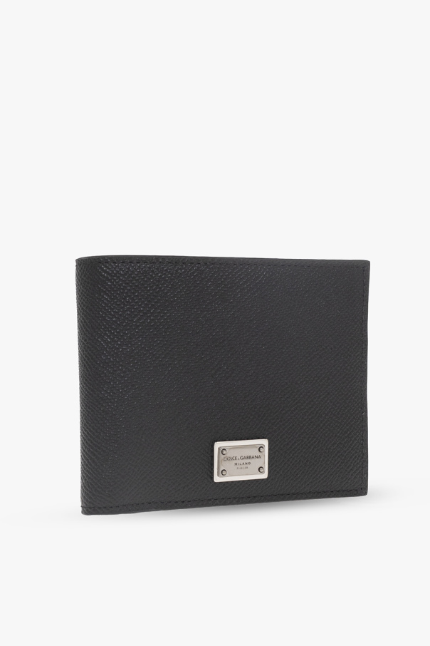 Black folding wallet from Dolce & Gabbana. Crafted from grained calf leather, this item features logo-engraved hardware on the front and one bill compartment, one snap-fastened pocket, three slip pockets and three card slots inside.