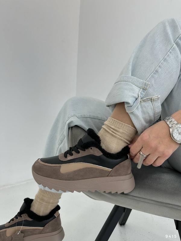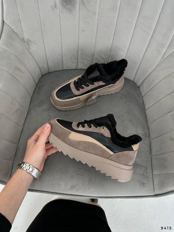 натуральная кожа + натуральная замша, внутри набивной мех ( 30-60% шерсть), подошва 3,5 см, размер в размер