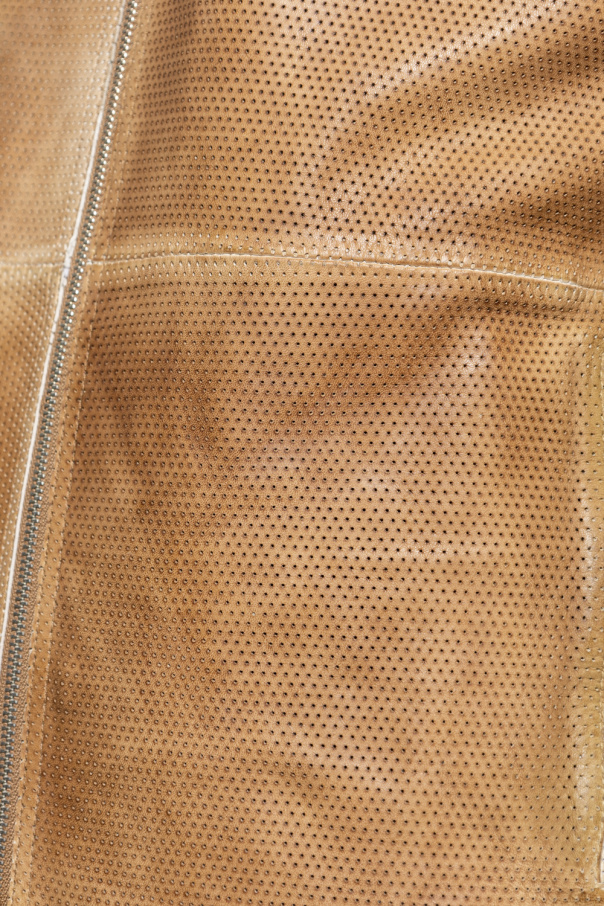 Brown ‘L-CLIME’ jacket with perforations from Diesel. Made of leather, this garment is complete with a zip fastening and two pockets.