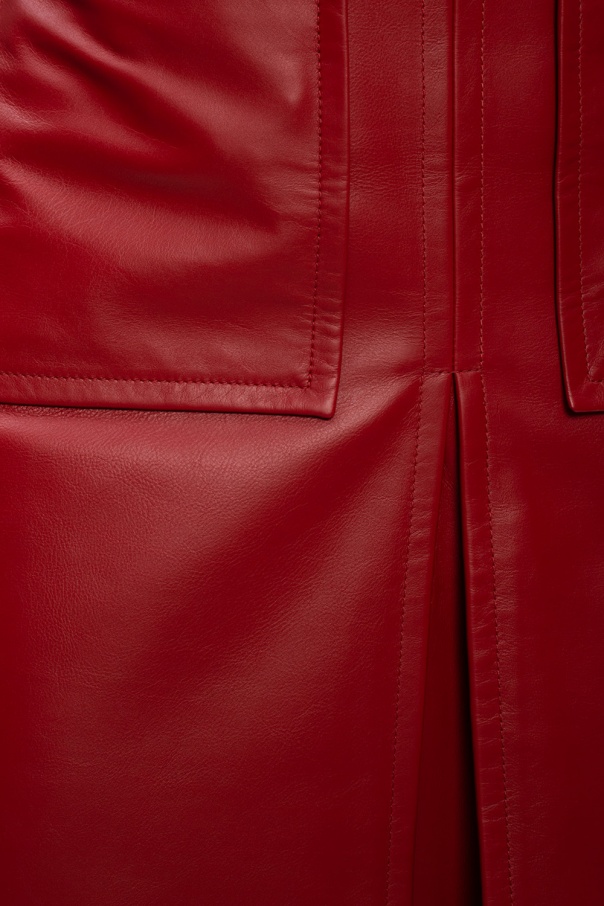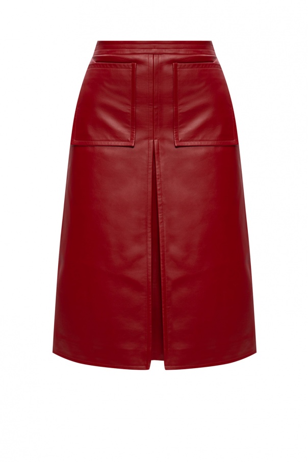 Red skirt from Burberry. Made of calf leather. Concealed zip fastening on the side. Decorative slits on the front and at the back. Two slip pockets.