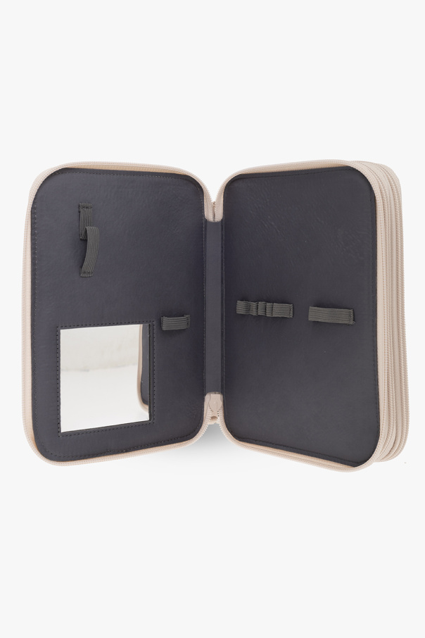 Multicoloured pencil case from Konges Slojd. Crafted from recycled material, this item has three separate zipped compartments. The front presents a colourful floral print. It is complete with a variety of fixtures to hold all the necessary stationary tools in place, a mirror and a flapped pocket with a snap inside.