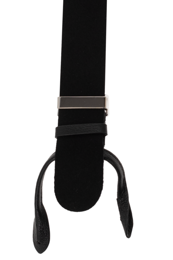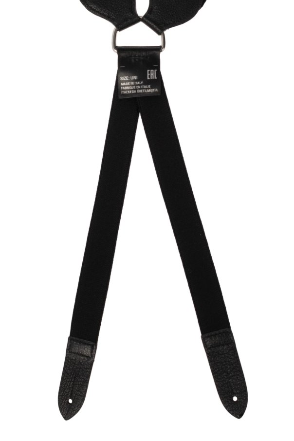 Black suspenders from Maison Margiela. Made of fabric with leather trims, this design is complete with silver-tone metal hardware.