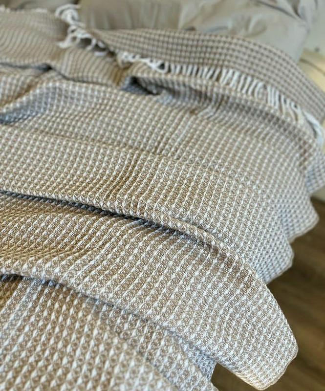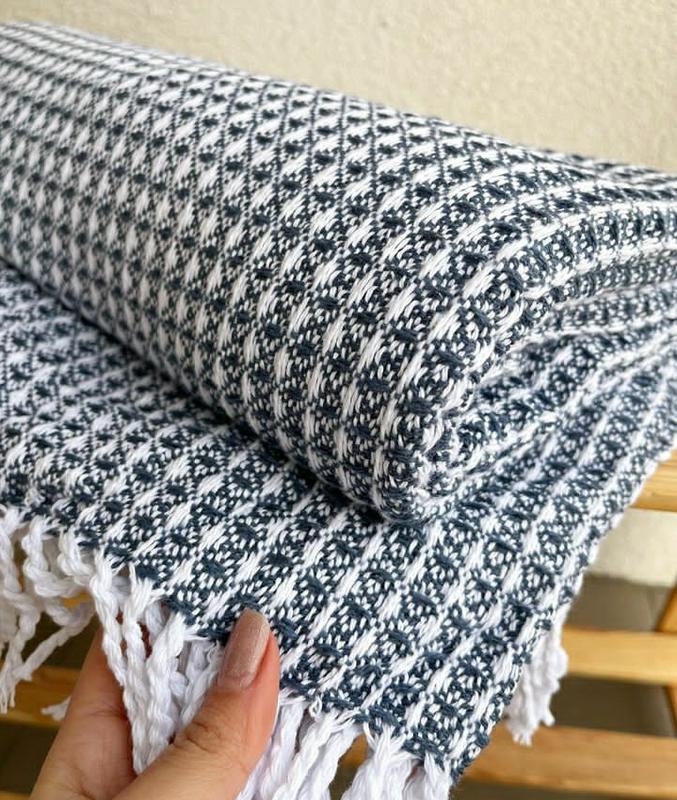 В наявності дуже красиві бавовняні пледи з візерунком та китицями. НЕ кусючі, дуже приємні на дотик. В складі 70% бавовна та 30% акрил, теплі, зносостійкі.