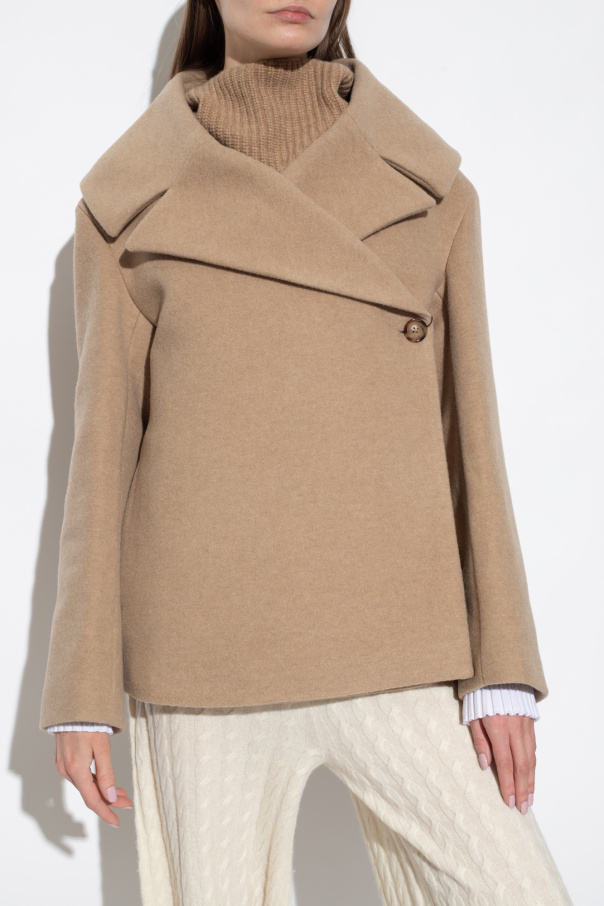 Beige coat from Toteme. Made of wool with a double-breasted silhouette, this style features button fastenings, notch lapels, two slip pockets and long sleeves.