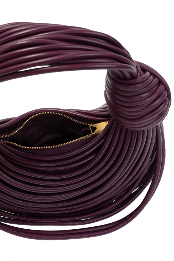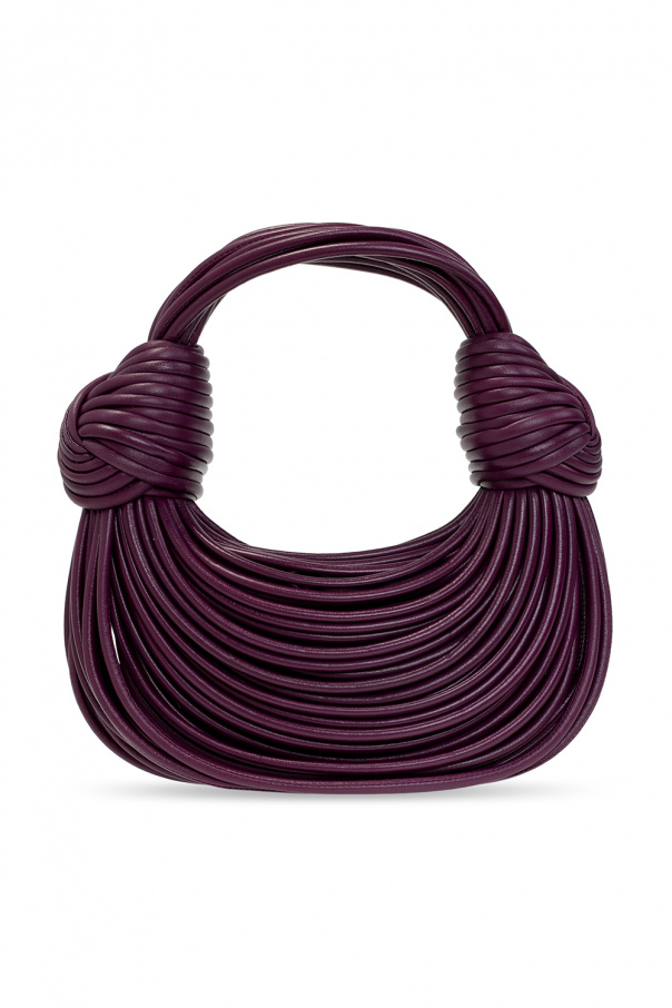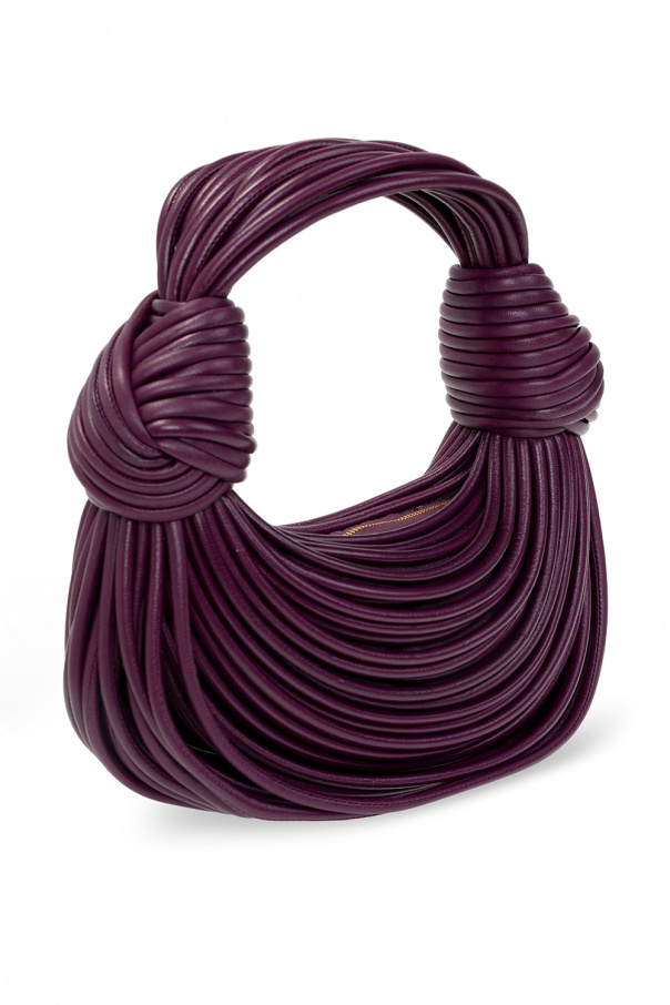 Dark purple ‘Double Knot’ handbag from Bottega Veneta. Made of calf leather, this design features a zip fastening, a half-round handle, gold-tone metal hardware and one internal compartment.