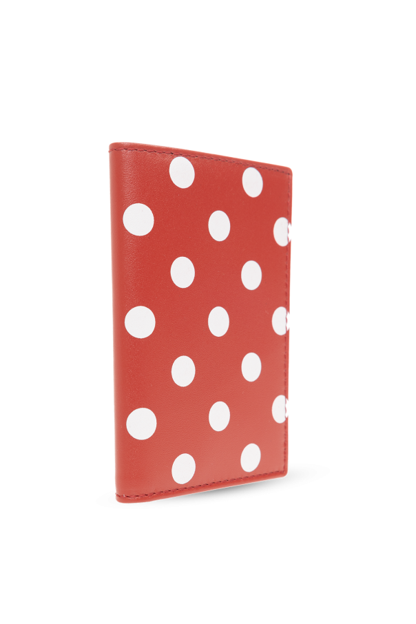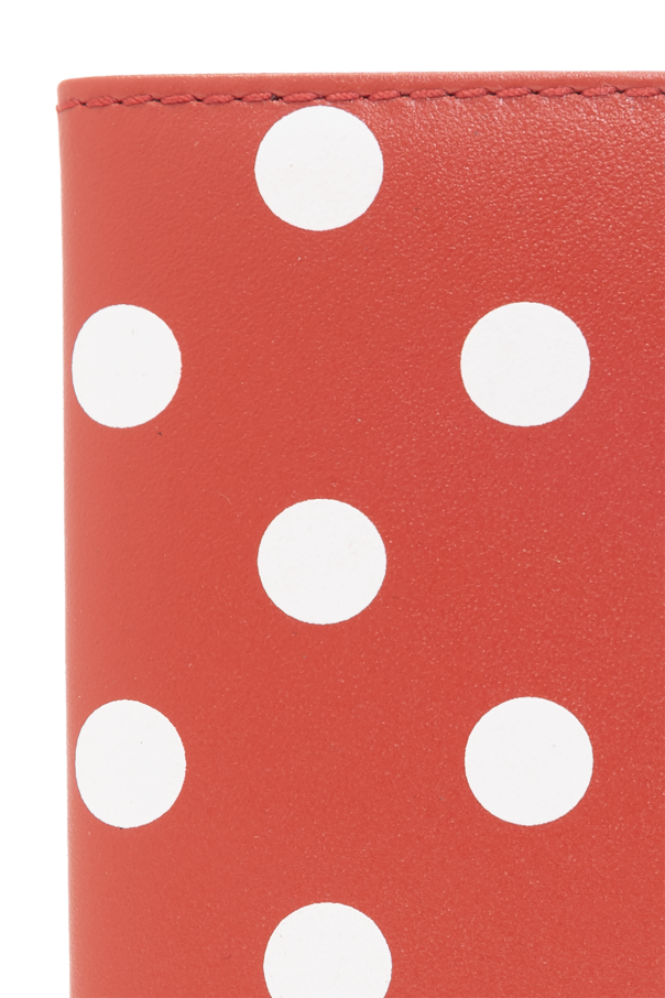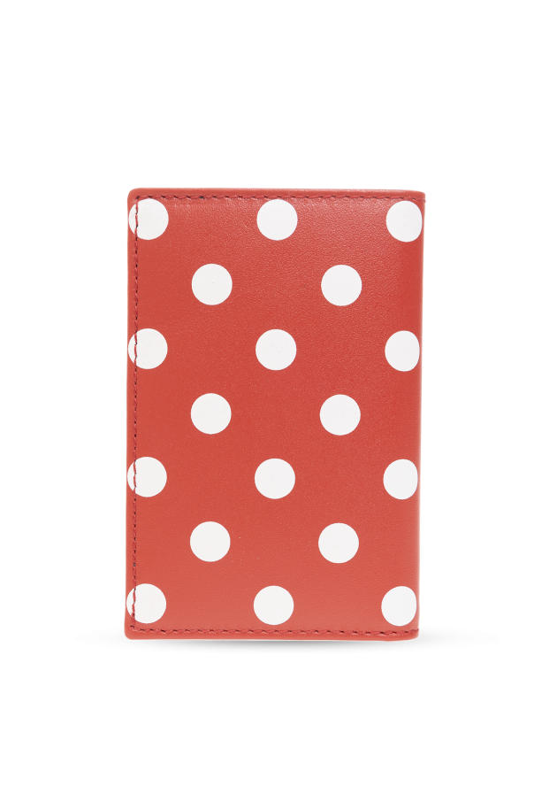 Red wallet from Comme des Garcons. Crafted from cow leather, this item features a white polka dot pattern, two internal slip pockets and one bill compartment.