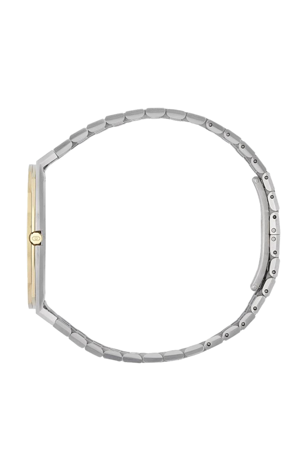 Gold-tone and silver-tone ‘Gucci 25H’ watch from Gucci. Crafted in the Swiss Kering watch manufacture, it is characterized by an innovative, ultra-thin 4mm case made of 18 carat gold. Polished and satin steel finish. The GUCCI 25H is playfully named after one of Alessandro’s Michele favourite numbers, which he considers a talisman and often includes in his Gucci collections.
