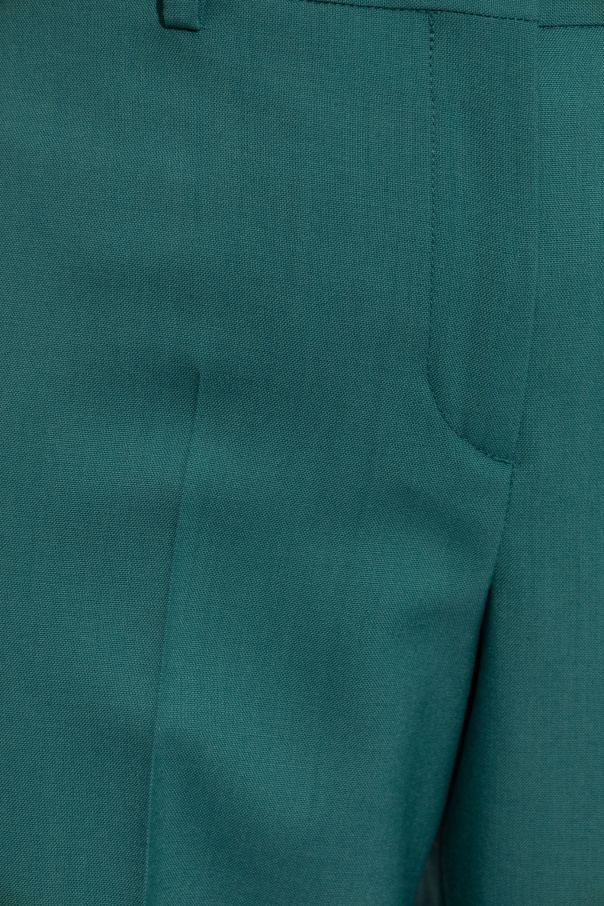 Immerse yourself in the epitome of sophistication with the PS Paul Smith Tapered Wool Trousers. Crafted with the utmost precision, these trousers exude an air of refined elegance that is hard to surpass. The lush, verdant hue ensures a seamless and uniform color throughout, capturing the essence of understated luxury. The trousers boast a classic, tapered silhouette, accentuated by a smooth wool fabric that speaks volumes of its premium quality. The front features two slanted pockets, seamlessly integrated to maintain a sleek profile, while the rear is adorned with two buttoned pockets, adding a touch of classic style. The absence of overt embellishments or prints underscores the minimalist, yet timeless design, with a zip fly, hook, and button closure providing a secure and traditional finish. Why Purchase This Product? Exquisite craftsmanship from PS Paul Smith, a testament to high-quality design and material. Elegant tapered fit, offering a modern twist on traditional wool trousers. Sublime green color, providing a unique yet versatile addition to your wardrobe. Minimalist design, ensuring compatibility with both formal and semi-formal ensembles.