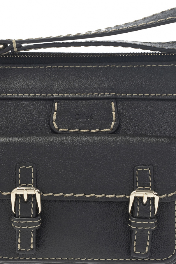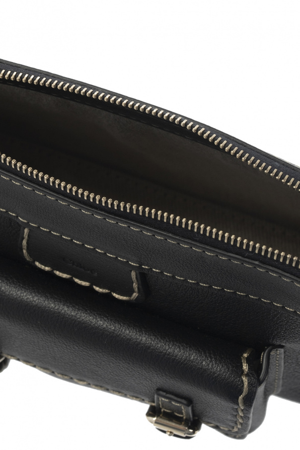 Black ‘Edith Small’ hand bag from Chloé. Crafted from buffalo leather, this model fastens with a zip and is complete with an embossed logo, a slip pocket, flap pocket with magnetic closure, wrist strap, gold-tone metal hardware and one internal compartment with linen lining.