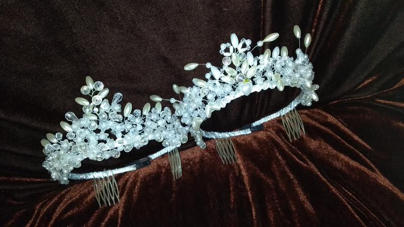 Корона, диадема, тиара, веточка из бусин и стразов. Ручная работа.
