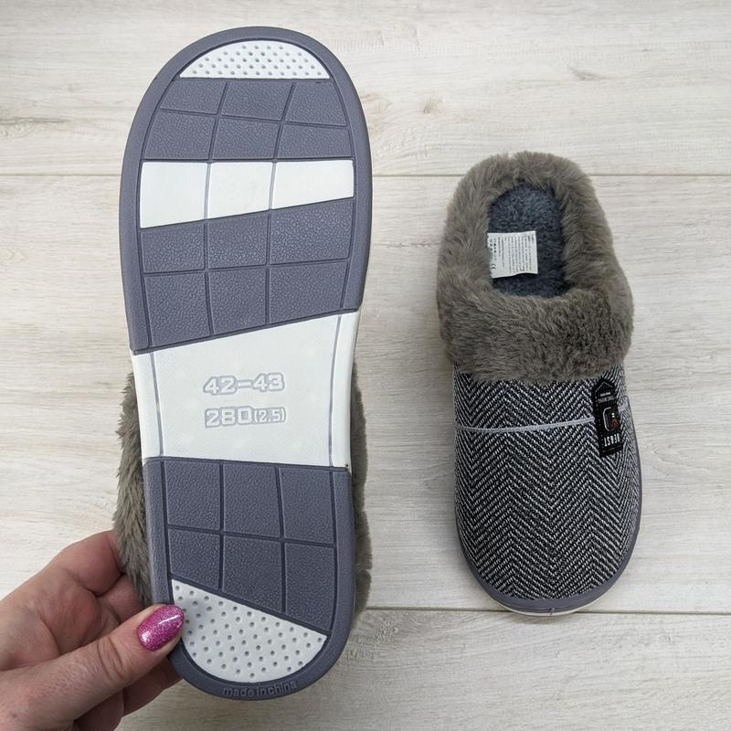 Тапочки мужские домашние теплые на мягкой резиновой подошве серые 3682