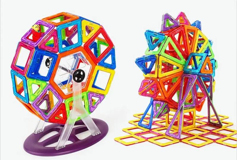 - Магниты соединяют элементы конструктора между собой, поэтому для создания моделей не нужно использовать крепления, завинчивать болтики и т.д.;