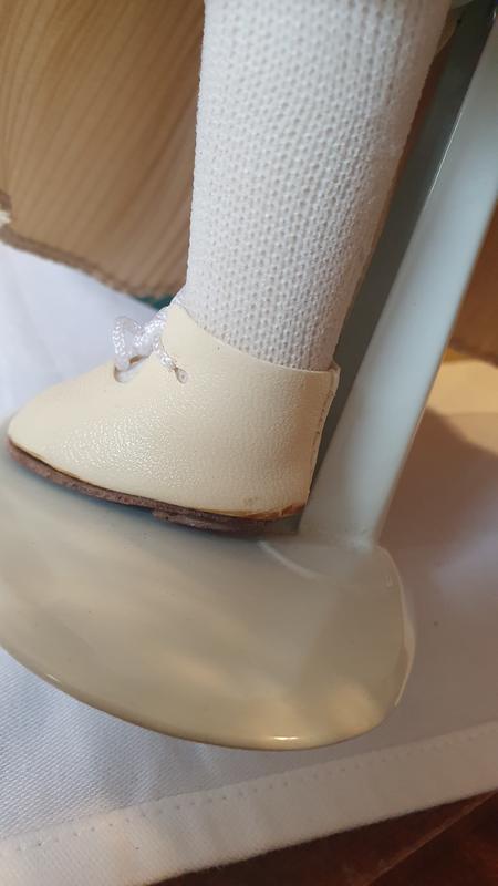 На возраст указывают только ее ботиночки, на которых потемнений клей ( видно на фото).