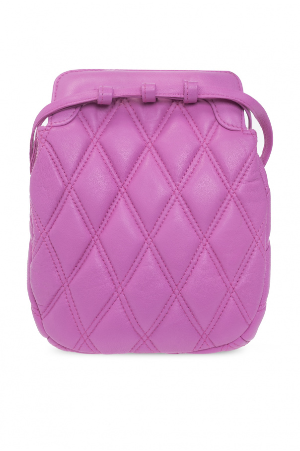 Pink ‘SunneyGZ’ quilted belt bag from Gestuz. Made of lamb leather with the Leather Working Group certificate, this model features a magnetic closure, drawstrings on the sides and one internal compartment with one zip pocket.