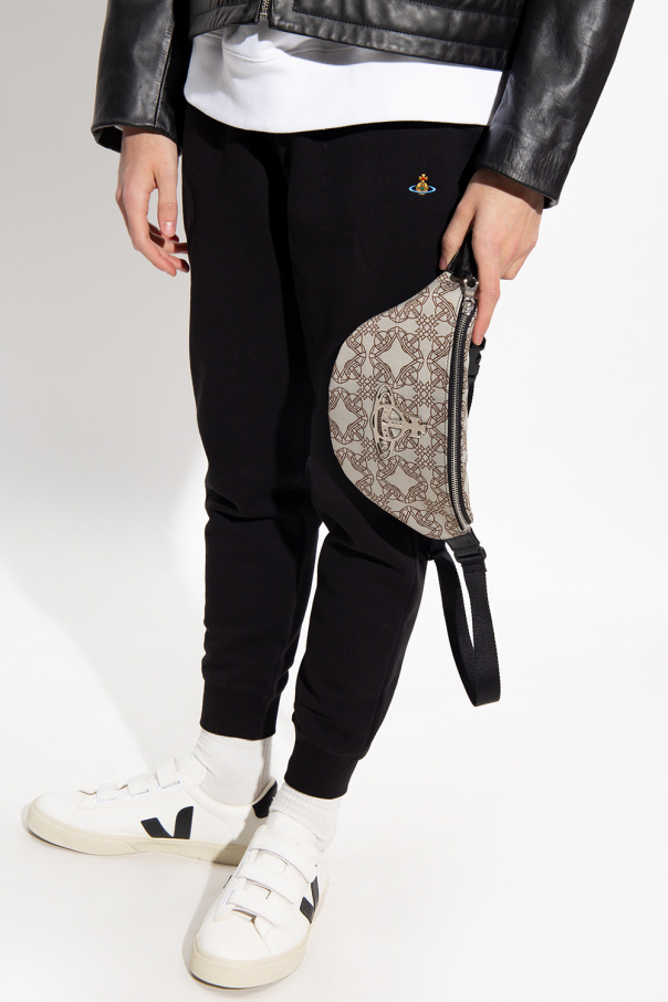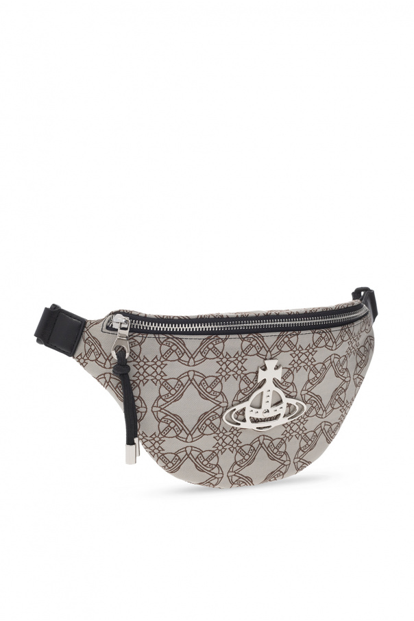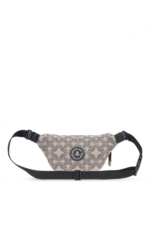 Grey ‘Hilda Small’ belt bag from Vivienne Westwood. Crafted from 100% recycled material, this design fastens via a zip and showcases brown ‘Orbmania’ embroidery, the brand's signature silver-tone metal orb, an adjustable strap, silver-tone metal hardware and one internal compartment with a slip pocket. 100% vegan product.