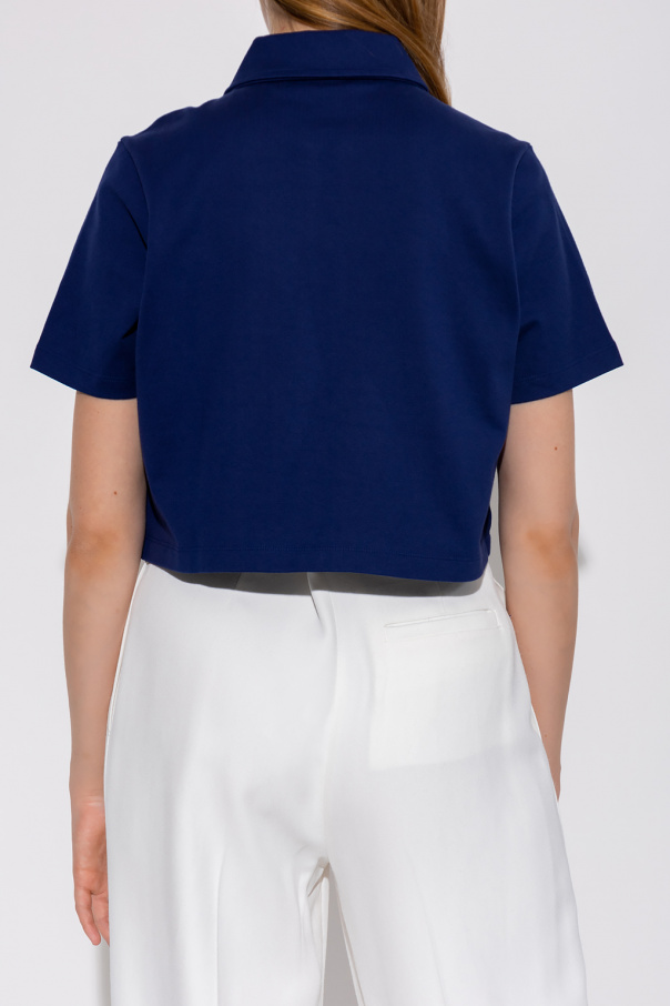 Navy blue polo shirt from ADIDAS Originals, the ‘End Plastic Waste’ line. Made from cotton with a cropped fit, this style features a quarter-zip closure, short sleeves and a logo patch on the front.